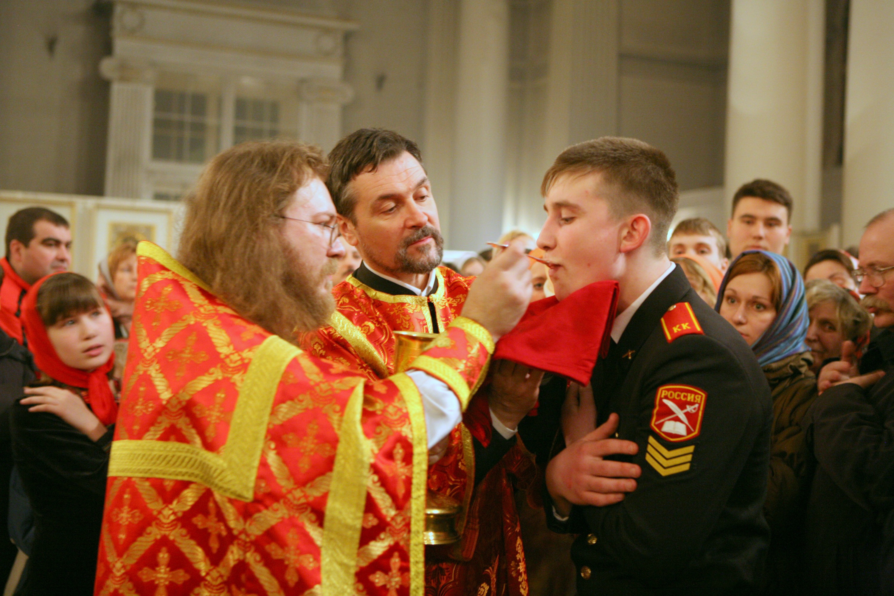 ПРОТОИЕРЕЙ АЛЕКСАНДР АВДЮГИН | 29 ОКТЯБРЯ 2014 Г. Все мы привыкли к тому, что в очереди к причастию мужчины имеют преимущество перед женщинами. Почему так повелось? Существуют ли канонические предпосылки для такого положения вещей? Протоиерей Александр Авдюгин попытался разобраться.  Протоиерей Александр Авдюгин «Сначала дети, затем мужчины, а потом женщины!» Знакомо? Мне тоже. Сам так говорю, когда причащать прихожан собираюсь. И, наверное, не задумывался бы я над этим, казалось бы, всем знакомым правилом, да вот беда, раз за разом вижу, как замечания о «внеочередности» наши постоянные прихожанки иным, не столь частым посетителям храма делают, а иногда и из очереди к Чаше выдергивают. С ретивыми прихожанками разберусь, но данное усердие в соблюдении «правила» заставило задуматься, а откуда собственно оно взялось? Вездесущий интернет православной направленности лишь подсказал, что так якобы когда-то советовал святитель Игнатий Брянчанинов. Даже если и советовал, то это был лишь его совет и не более того. Доводить совет даже святого подвижника до канонической нормы нельзя, а искать consensum patrum (согласия отцов) о порядке очередности во время причастия или помазания елеем глупо. Ясно и не вызывает сомнений лишь одно, что первыми причащаются монашествующие, а затем те, кто в стихарях и подрясниках. Апостольские постановления четко говорят об этом: «… пусть причащается епископ, потом пресвитеры, диаконы, иподиаконы, чтецы, певцы, аскеты, а между женщинами – диакониссы, девственницы, вдовицы, потом дети, а затем весь народ по порядку, со стыдливостью и благоговением, без шума». Именно «народ по порядку», а не изначально мужчины, а затем женщины. По поводу очередности причащения детей, казалось бы (судя по вышеприведенной цитате), тоже вопросов нет, хотя среди священства мнения разнятся. Так протоиерей Дмитрий Смирнов в одной из своих многочисленных передач подошел к этому вопросу очень даже практически: «Дети первые. Для удобства. Гвалта меньше будет». И действительно, как бы ни любили мы своих чад, но благоговейно подходить к Чаше, когда рядом крик и плач, не у каждого получится. Хотя священник Сергий Свешников,разбирая этот же вопрос, решает и здесь заняться воспитанием: «Если, например, какой-нибудь малыш капризничает, и маме или папе с ним трудно, а очередь к причастию длинная, то конечно, можно их пропустить вперёд… А родителям стоит задуматься о том, что если они постоянно своего ребёночка пропихивают вперёд, помимо взрослых людей, помимо престарелых людей, то это воспитывает в детях вещи совсем не добродетельные. А если же ребёночку объяснить, что нужно спокойно встать, уважая взрослых, пропустить их вперёд, а потом уже идти самому, то вот это будет правильное христианское отношение». Воспитывать, конечно, надобно всегда, но все же есть четкое апостольское установление: после тех, кто в стихарях и чинах церковных написаны именно «дети». В некоторых храмах РПЦ можно наблюдать, к сожалению, забытую традицию, когда мужчины стоят с одной стороны храма, а женщины с другой. От этого и складывался четкий порядок подхода к Чаше, к помазанию, к кресту. У старообрядцев данная расстановка (пришедшая из ветхозаветного храма) сохранилась по сей день, у нас же она редкость, только в монастырях можно увидеть, да и то не во многих.