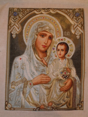 Иерусалимская икона Божьей Матери Самая сложная моя работа. 50000 крестиков. Перед дизайнером можно просто снять шляпу - настолько красиво разработано (разработчик схемы Стоянка Иванова)