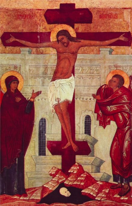 Пречи́стому О́бразу твоему́ поклоня́емся, благи́й, прося́ще проще́ния прегреше́ний на́ших, Христе́ Бо́же: во́лею бо благоволи́л еси́ пло́тию взы́ти на крест, да изба́виши, я́же созда́л еси́, от рабо́ты вра́жия. Тем благода́рственно вопие́м Ти: ра́дости испо́лнил еси́ вся, Спа́се наш, прише́дый спасти́ мир.
