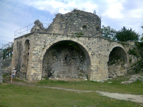 сверху над арками древнейшая часть крепости, это алтарная часть храма Феодора Тирона, она никогда не перестраивалась и не реставрировалась