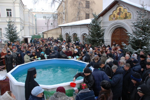 Раздача святой богоявленской воды. Фото: Антон Поспелов / Православие.Ru