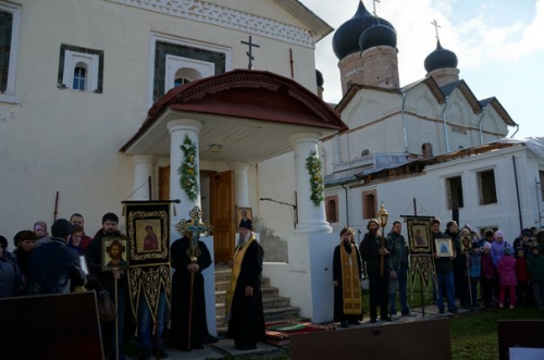 И молебен на крыльце собора в монастыре