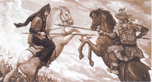 Поединок Пересвета с Челубеем на Куликовом поле Васнецов.