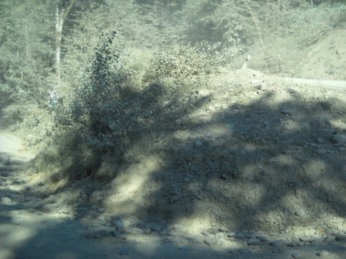 В правом верхнем углу - дорога, потом поворот на 180 градусов, он не вощел в кадр, и в левом нижнем углу уже продолжение дороги... все вокруг белесое.. в пыли